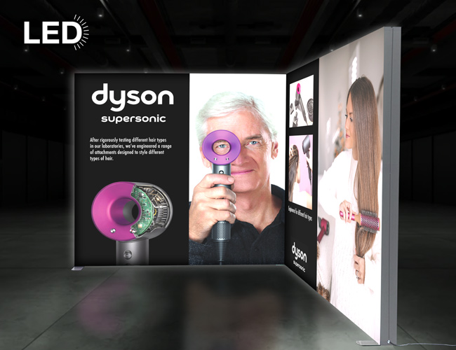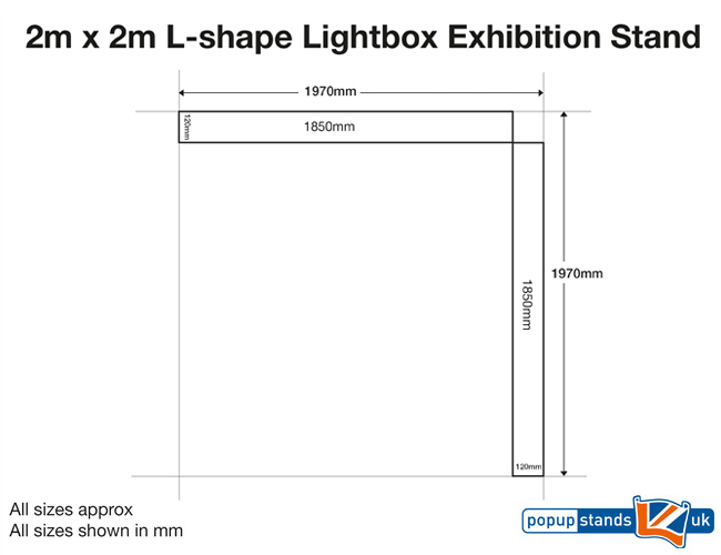 A LED lightbox exhibition stand package perfect for 2m x 2m shell schemes or space only areas. Lightweight, portable and cost effective this illuminated L-shape display can be easily transported to and from events by car, plane or train. One person can install the stand in 20-30 minutes as the hardware has numbered, push-fit parts. No set-up tools required or complex user instructions. Measuring almost 2.4m high the structure also fits comfortability within most shell schemes areas, but please check with your event organiser for any specific height restrictions.