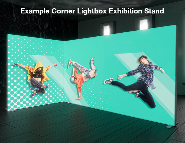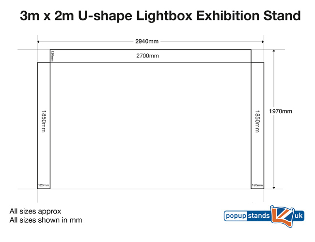 Our 3m x 2m U-shape lightbox exhibition stand offers an eye-catching portable solution for trade show events. With a sleek white, powder coated aluminium frame measuring 120mm deep and 2380mm high, it features numbered push-fit parts that require no tools, ensuring a quick and hassle-free setup.