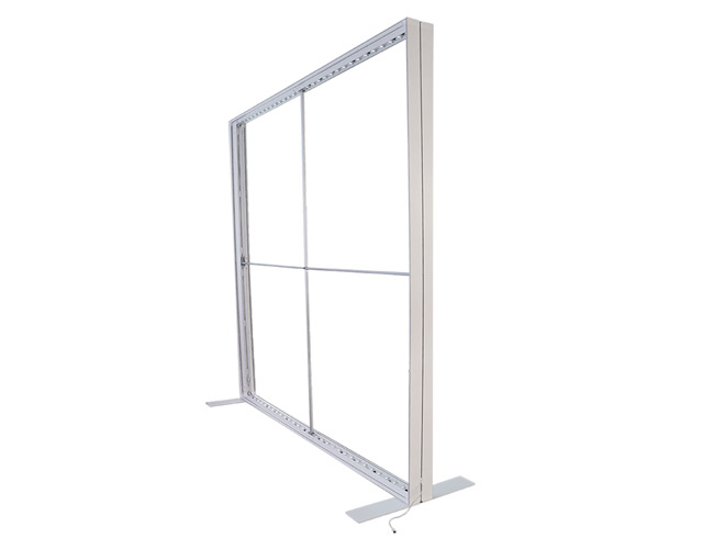 The digitally printed SEG graphics fit securely into the frames channel, effectively preventing the internal LED light from escaping, which results in an impressive and uniform light distribution. The top and bottom LED lights are pre-fitted and are powered through transformers, consuming only 580 watts in total.