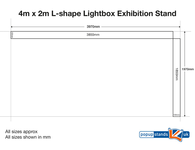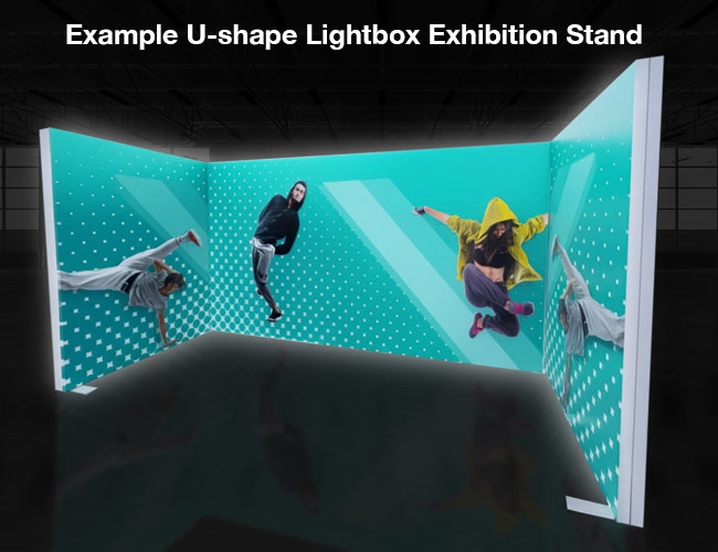 If you have a future tradeshow event and have a designated space of 4m x 2m (8 sqm) then consider our portable lightbox L-shape exhibition stand package. This stand is specifically designed to fit seamlessly into the corner of a trade show booth, offering an illuminated lightbox solution that maximises visibility and brand exposure.