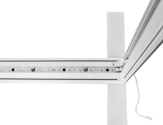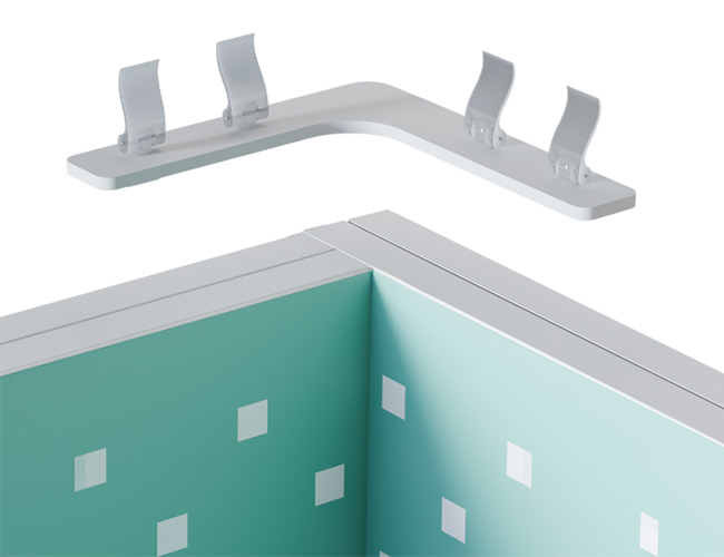 The stand features a sleek white, powder-coated aluminium frame equipped with bright, pre-assembled LED bulbs positioned along the frame top and bottom, ensuring even and brilliant light distribution. Included are stabilising feet and luxury wheeled padded carry bags for safe transport and storage when not in use. This option serves as a popular alternative to our best-selling 4m x 2m L-shape popup stand. The premium full-colour graphics are finished with push-fit silicon edging, allowing for a quick and easy application into the framework's channel. Designed to be user friendly, the hardware features numbered push-fit components enabling a tool-free assembly that can be completed in under 30 minutes.